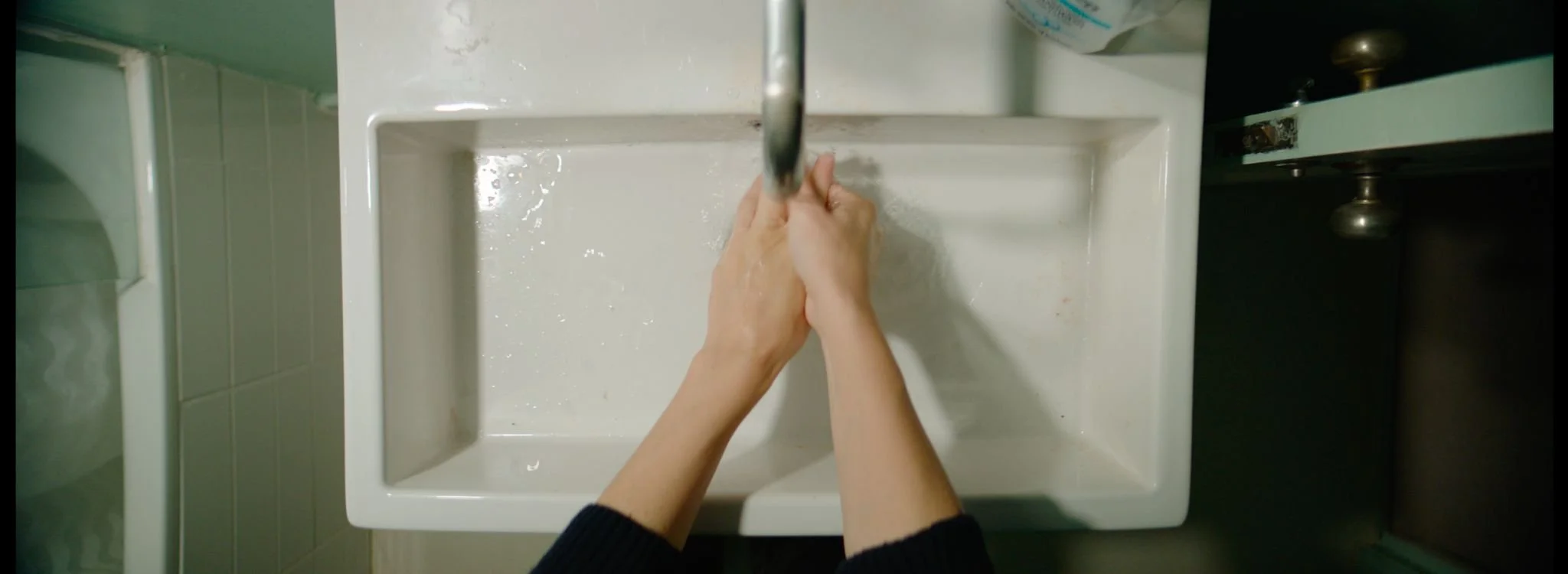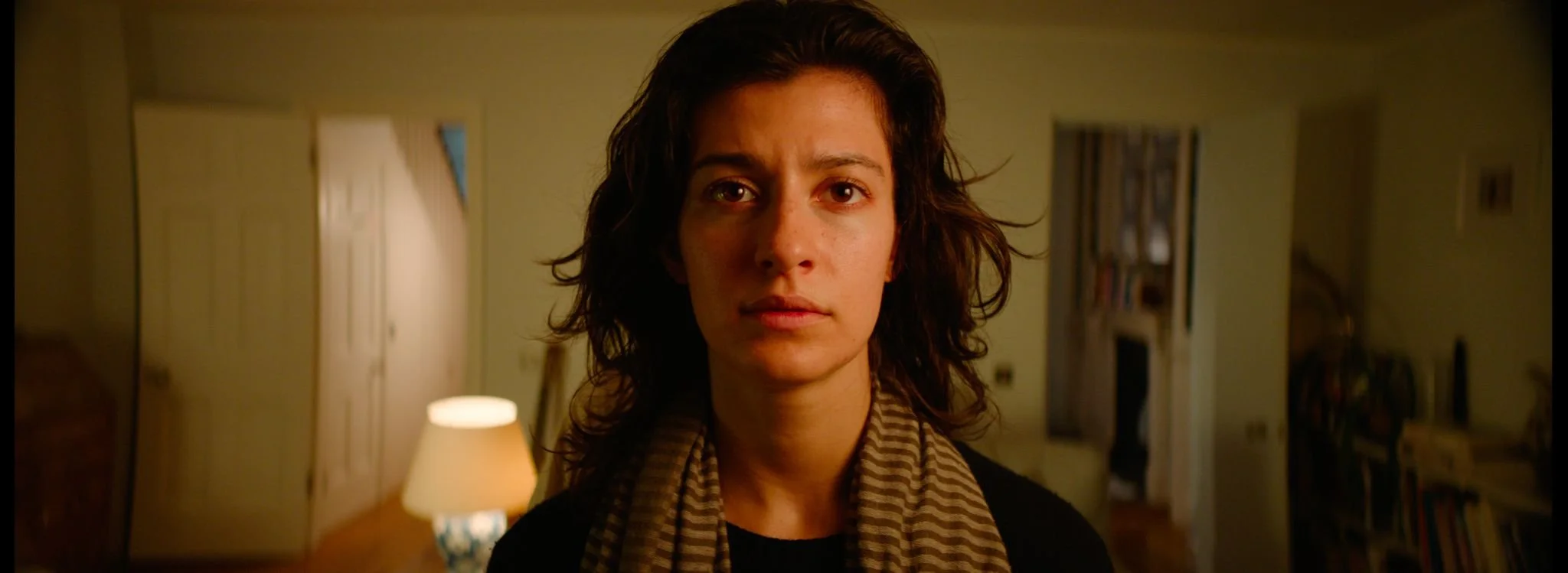 “With Her" follows a young woman whose grip on reality begins to unravel as she isolates herself within the walls of her home. Someone keeps knocking, a strange man appears at her door again and again. Who is he? And what is she so desperate to hide from?